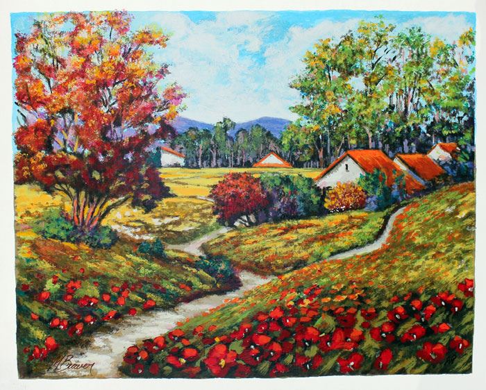 Artist: Mark Braver - Title: Red Poppies - Medium: Serigraph on Fine Art Paper - Signature: Hand-signed by the Artist - Limited Edition: 490 - Image Size: Approximately 12.5 inches x 16 inches - Paper Size: Approximately 14 inches x 17.5 inches - Unframed - Details: This work comes with a Certificate of Authenticity - Mark Braver's Artwork Is Unique In Its Vivid Colors And Special Textures. His Compositions Come To Life On The Canvas In An Abundance Of Colors While His Unique Layering And Texturing Techniques Lend The Paintings An Unusual Quality.
