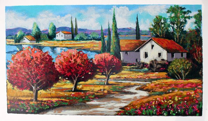 Artist: Mark Braver - Title: Season of Bloom - Medium: Serigraph on Fine Art Paper - Signature: Hand-signed by the Artist - Limited Edition: 550 - Image Size: Approximately 10.25 inches x 18 inches - Paper Size: Approximately 12 inches x 19.75 inches - Unframed - Details: This work comes with a Certificate of Authenticity - Mark Braver's Artwork Is Unique In Its Vivid Colors And Special Textures. His Compositions Come To Life On The Canvas In An Abundance Of Colors While His Unique Layering And Texturing Techniques Lend The Paintings An Unusual Quality.