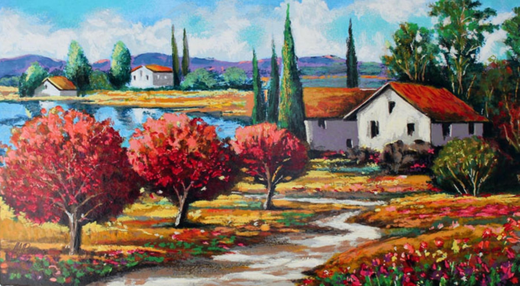 Artist: Mark Braver - Title: Season of Bloom - Medium: Serigraph on Fine Art Paper - Signature: Hand-signed by the Artist - Limited Edition: 550 - Image Size: Approximately 10.25 inches x 18 inches - Paper Size: Approximately 12 inches x 19.75 inches - Unframed - Details: This work comes with a Certificate of Authenticity - Mark Braver's Artwork Is Unique In Its Vivid Colors And Special Textures. His Compositions Come To Life On The Canvas In An Abundance Of Colors While His Unique Layering And Texturing Techniques Lend The Paintings An Unusual Quality.