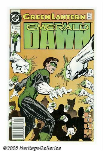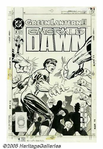 <B>Mark Bright and Klaus Janson - Green Lantern: Emerald Dawn #4 Cover Original Art (DC, 1990).</B></I> Hal Jordan was caught in a crossfire as he faced a menacing gauntlet of power rings wielded by the Green Lantern Corps. Mark Bright's portrait of Hal Jordan continued a legacy of artistic excellence that Gil Kane and Neal Adams brought to the character. The image area of the art is 10" x 15", and the art is in Excellent condition. A copy of the comic book is included in this lot.