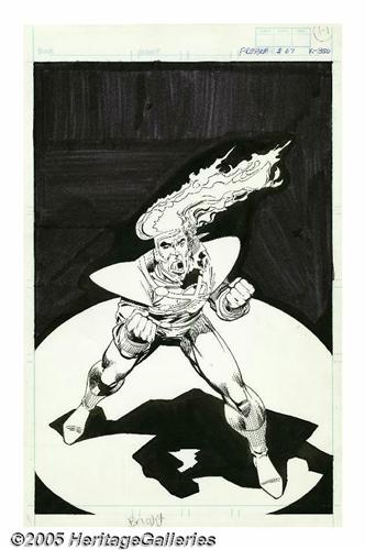 <B>Mark Bright and Sam de la Rosa - Firestorm the Nuclear Man #67 Cover Original Art (DC, 1988).</B></I> The copy for this spotlit tableau read, " Raging, helpless, Ronnie struggles to free himself from Firestorm." Firestorm was born when high school student (and anti-nuclear demonstrator) Ronnie Raymond was merged with the personality of professor Martin Stein during a bomb blast next to a nuclear pile. Their two personalities were used to create the atomic energy being, Firestorm. Ronnie's frustrations were dramatically expressed in Mark Bright's powerful figure drawing.The image area of the cover is 10" x 15". The cover doesn't have its title or caption stats; otherwise it's in Excellent condition.