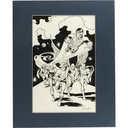 <B>Mark D. Bright and Rich Burchett - DC Sneak Preview #1 Cover Original Art (DC, 1991).</B></I> Green Lantern and the Justice Society of America highlight the cover of this giveaway comic book. Penciled by Mark D. Bright, and inked by Rich Burchett, the art has an image area of 10" x 15" and is in Excellent condition. Signed by Mark D. Bright at the bottom right. <I> From the Fantastic Frank Collection.</B></I><BR><BR><b>Shipping:</b> Flat Material, Small (<a target="_blank" href="http://www.heritageauctions.com/common/shipping.php">view shipping information</a>)