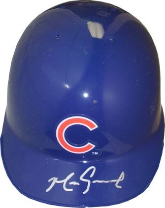 Mark Grace is a former Major League Baseball first baseman for 16 seasons with the Chicago Cubs and Arizona Diamondbacks. He batted left-handed. He wore jersey number 28 and 17 during his rookie season in 1988, and he kept number 17 for the remaining of his career. Grace retired with a .303 batting average and a .383 career on-base percentage, the 148th best in major league history. Mark Grace has hand signed this Chicago Cubs Mini Batting Helmet . MAB Hologram and Certificate of Authenticity From Athlon Sports.
