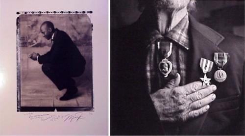 Mark Hauser & Nicholas Vedros (five) Mark Hauser, MICHAEL JORDAN, color photograph, image 36 x 28", the numbered edition 10, signed by Hauser and Jordan, inscribed ‘To Alan from the two top shooters in Chicago’, sheet 55 x 41"mounted to foam-core, bent; EXHIBITION POSTERS, three posters, each mounted to card; Nicholas Vedros, DECORATED WAR VET, 1990, photograph, 14 x 11", signed and dated, matted. (5)