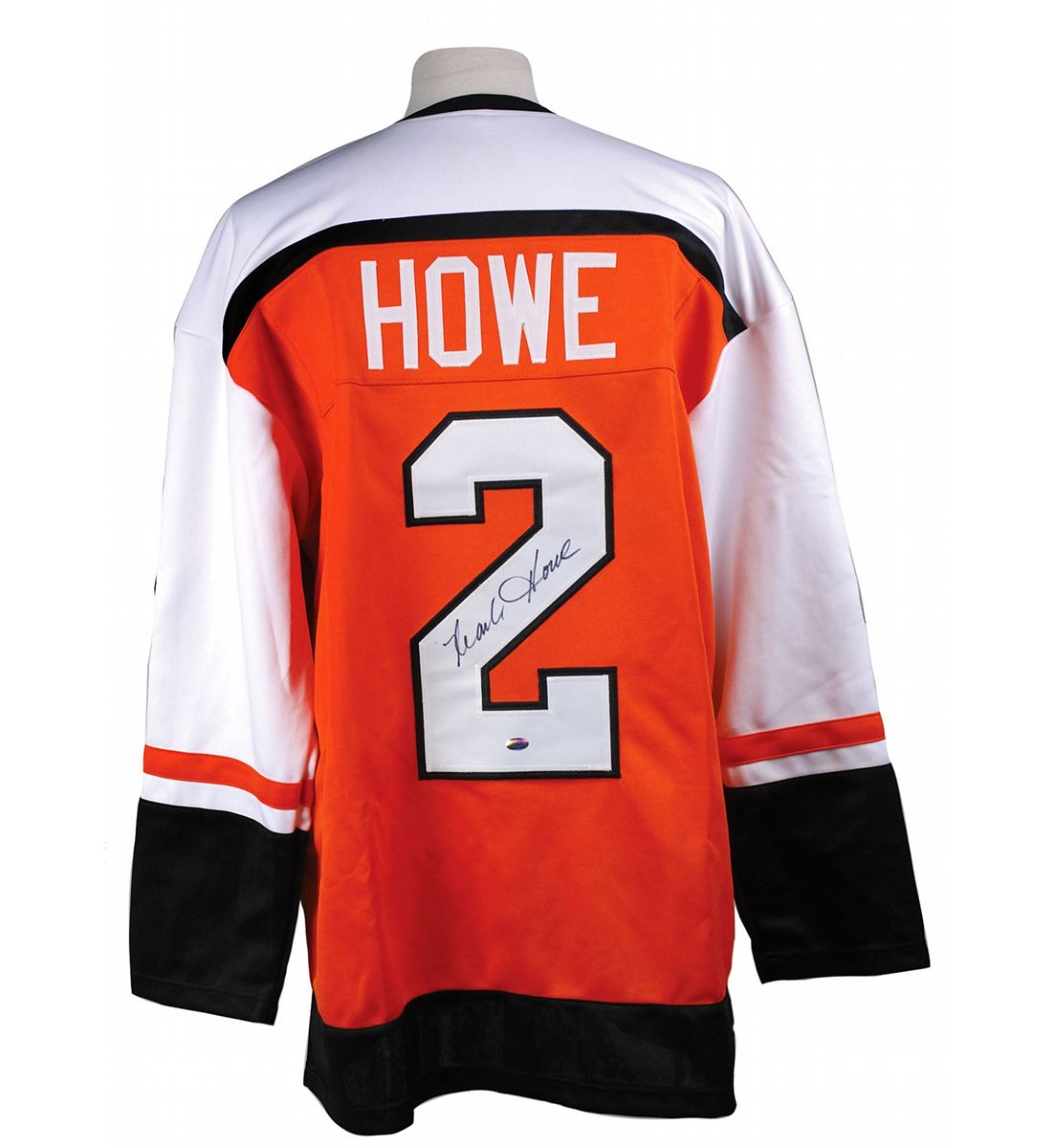 Replica Philadelphia Flyers hockey jersey, with sewn on letters and numbers, signed in black felt tip on the number on the back. In fine condition.
