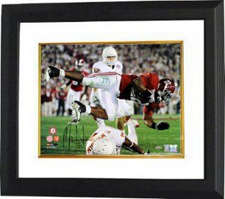 During his sophomore season in 2009 Mark Ingram won Alabama's first-ever Heisman Trophy, set the Crimson Tide's single-season rushing record with 1,658 yards, was voted to the AP All-America first-team and helped lead the Tide to an undefeated 14–0 season including a victory in the 2010 BCS National Championship Game. Mark Ingram has hand signed this Alabama Crimson Tide 16X20 Photo. Ingram Hologram and Certificate of Authenticity from Athlon Sports. Custom White Mat and Premium Black Color Frame.