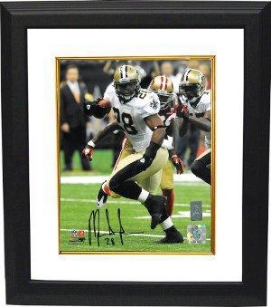 During his sophomore season in 2009 Mark Ingram won Alabama's first-ever Heisman Trophy, set the Crimson Tide's single-season rushing record with 1,658 yards, was voted to the AP All-America first-team and helped lead the Tide to an undefeated 14–0 season including a victory in the 2010 BCS National Championship Game. Mark Ingram has hand signed this New Orleans Saints 16x20 photo. First Round Draft pick by the New Orleans Saints in 2011. Ingram Hologram and Certificate of Authenticity from Athlon Sports. Custom White Mat and Premium Black Color Frame.