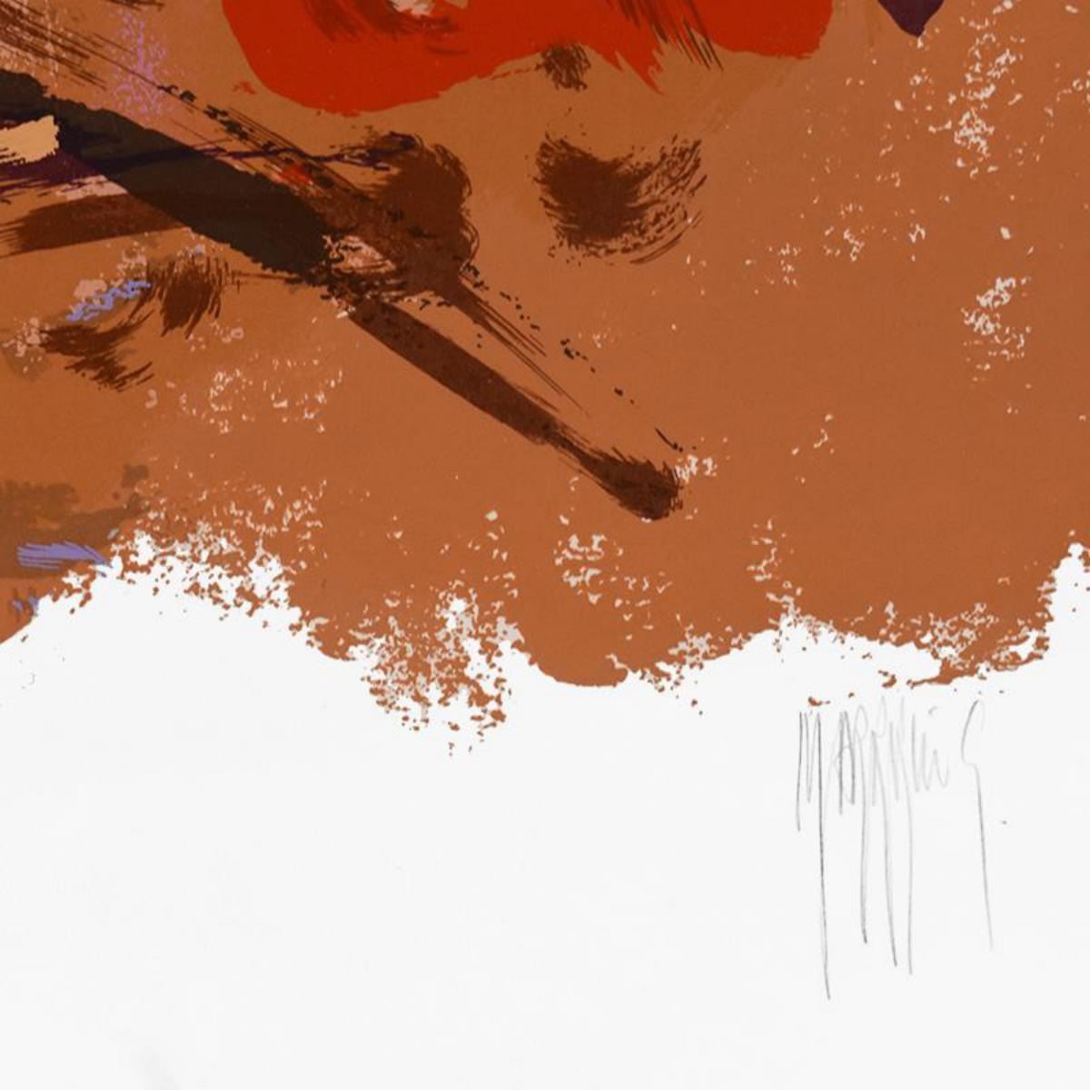 "Lion" is a limited edition serigraph on paper by Mark King (1931-2014), numbered and hand signed by the artist. Includes Letter of Authenticity. Measures approx. 34" x 33" (border), 30" x 29" (image). Please note: due to the age of this piece there is minor wear in the white border area. Reference #: 250969