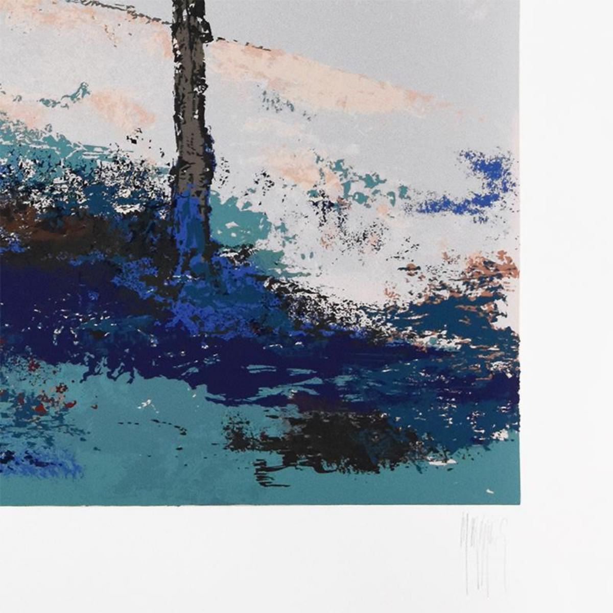 "Sidewalk Cafe" is a limited edition serigraph on paper by Mark King (1931-2014), numbered and hand signed by the artist. Includes Letter of Authenticity. Measures approx. 45" x 35" (border), 40" x 30" (image). Please note: due to the age of this piece there is minor discoloration in the white border area. Reference #: 250965