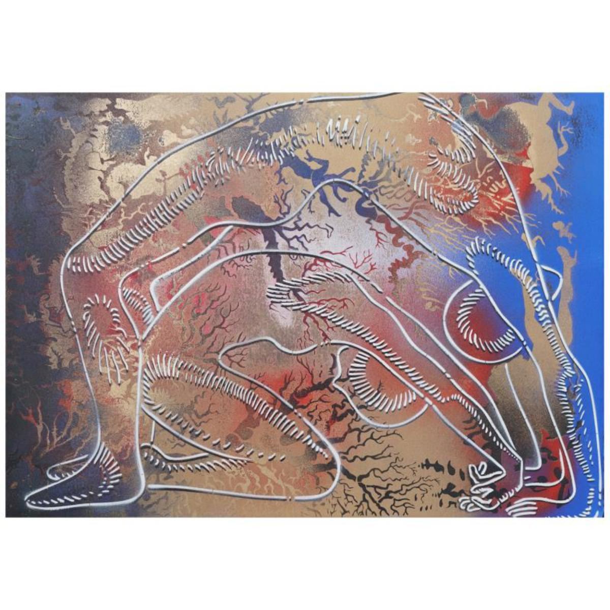 Mark Kostabi, "Beyond Borders" Mixed Media Original Painting; Hand Signed, with COA.