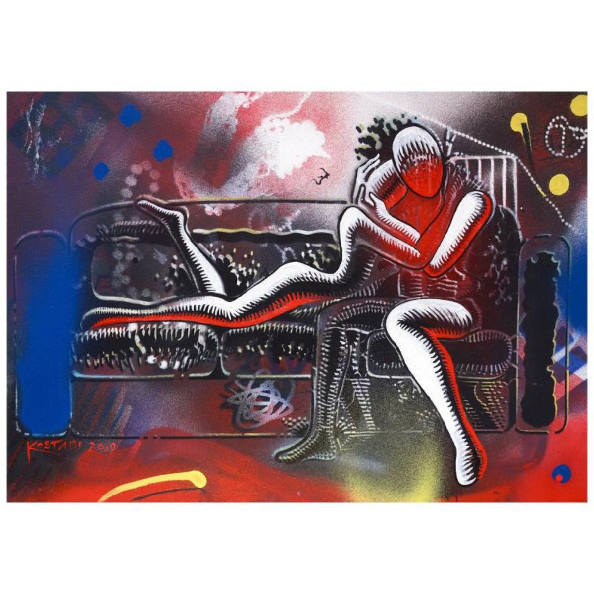 "Beyond Tomorrow" is a mixed media original painting on paper, by Mark Kostabi. The piece is hand signed and comes with a certificate of authenticity. Measures approximately 29.5" x 42". Reference #: 236223