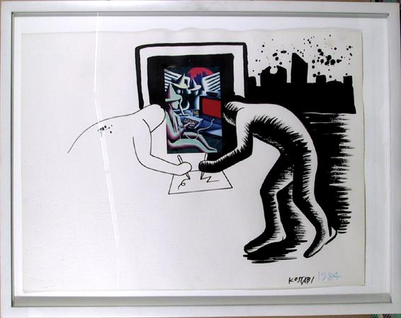 Medium: Ink Drawing and Collage on paper [Signed and Dated, lower right]