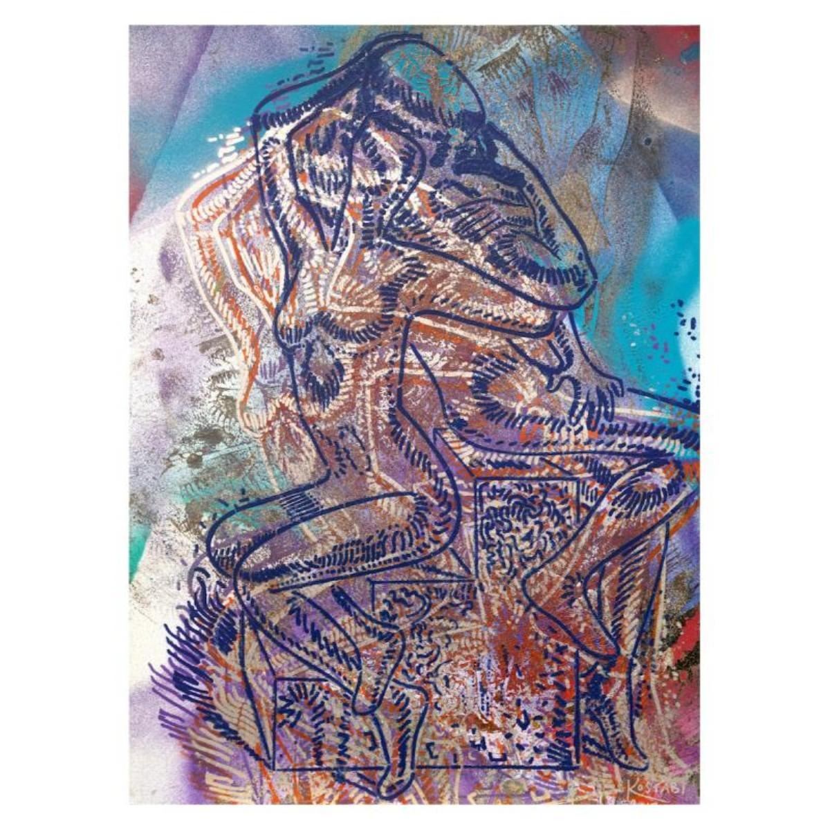 "Eternal Embrace (Mediterranean)" is a mixed media original painting on paper, by Mark Kostabi. The piece is hand signed and comes with a certificate of authenticity. Measures approximately 30" x 22.5".