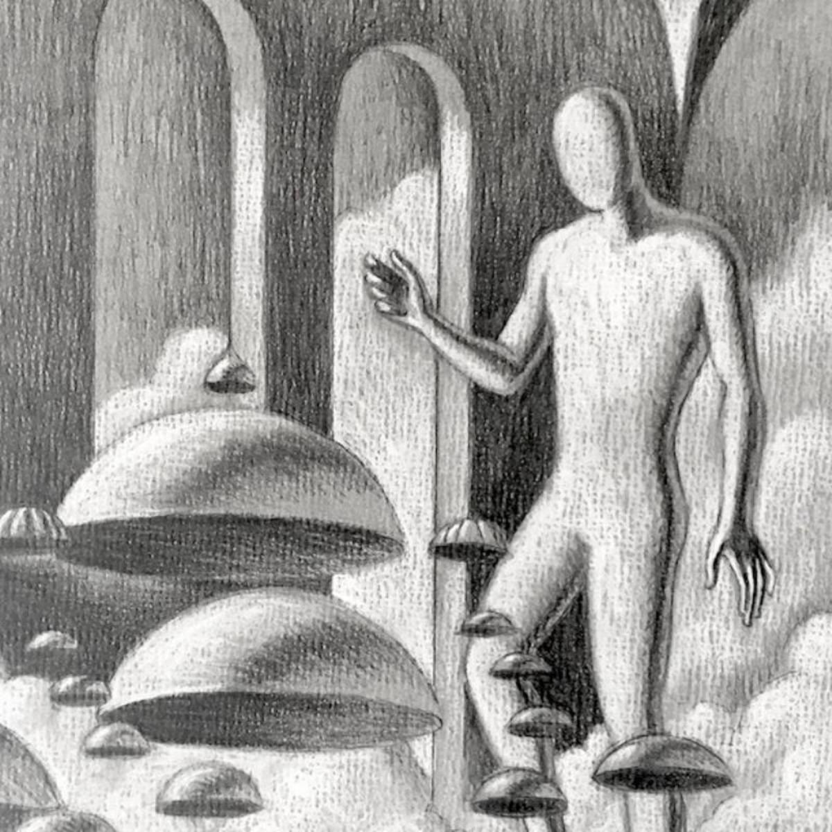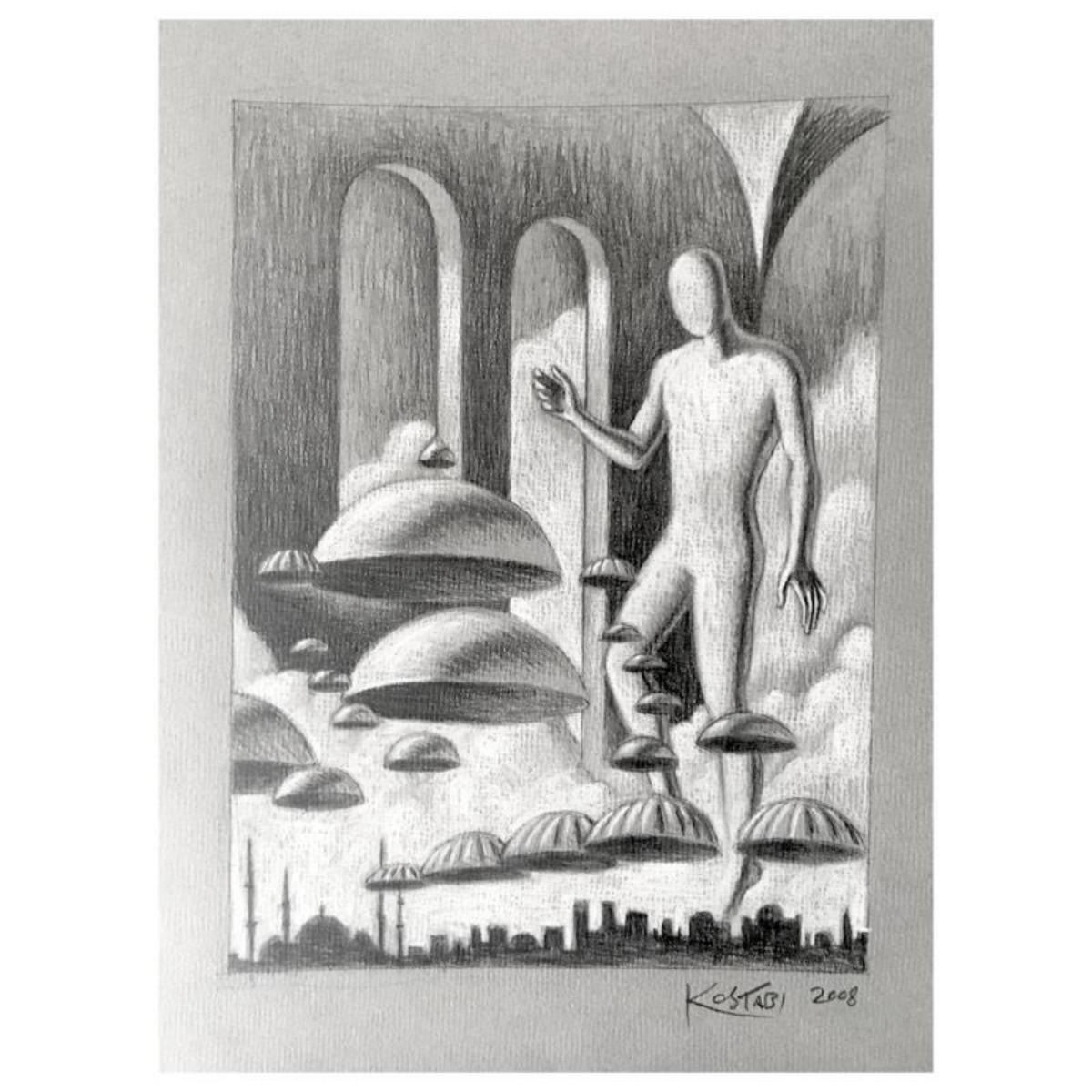"Half Of The Equation" is an original artwork, pencil on paper, by Mark Kostabi. The piece is hand signed and comes with a certificate of authenticity. Measures approximately 13" x 9". Reference #: 236246