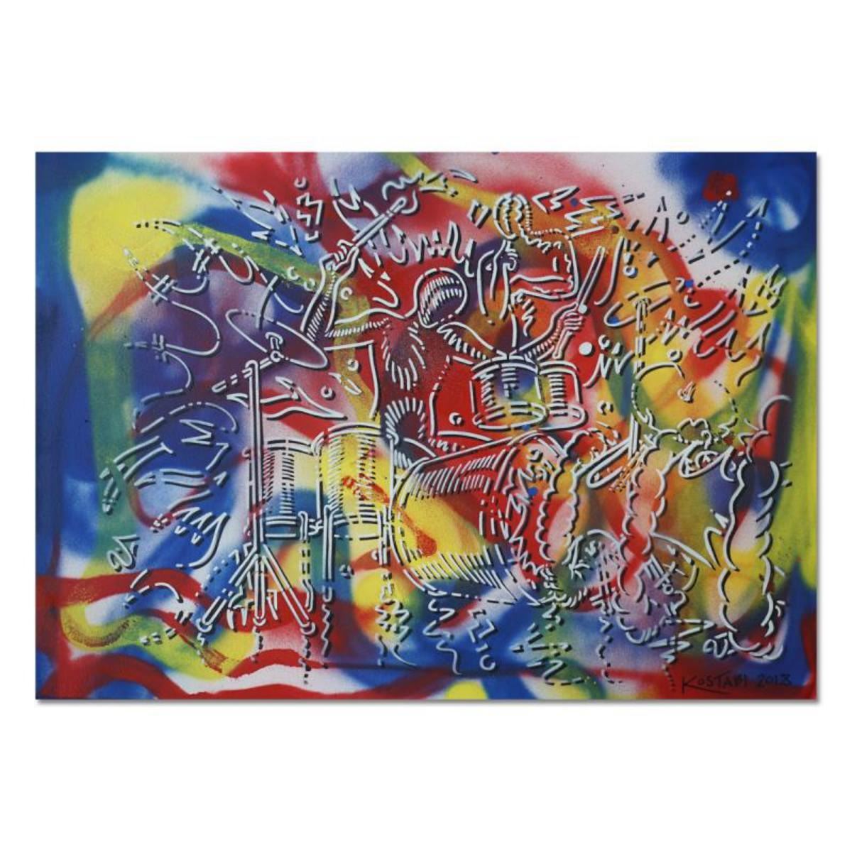 Mark Kostabi, "Power Play" Mixed Media Original Painting; Hand Signed, with COA.