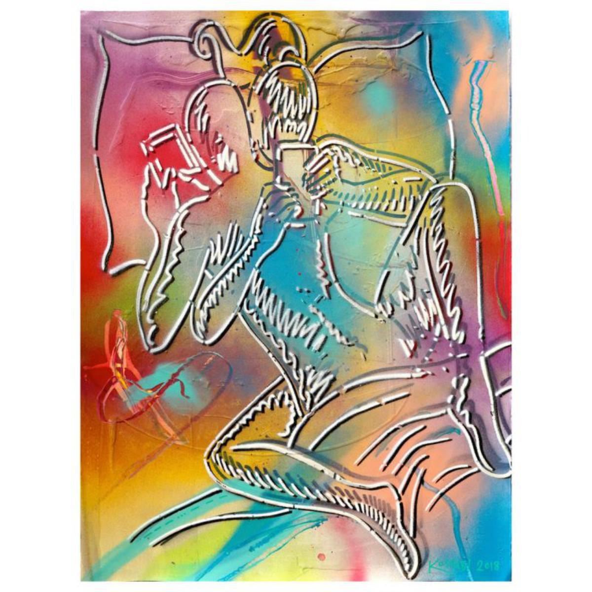 "Sexting (Primary Explosion)" is a mixed media original painting on paper, by Mark Kostabi. The piece is hand signed and comes with a certificate of authenticity. Measures approximately 30" x 22.5". Reference #: 236271