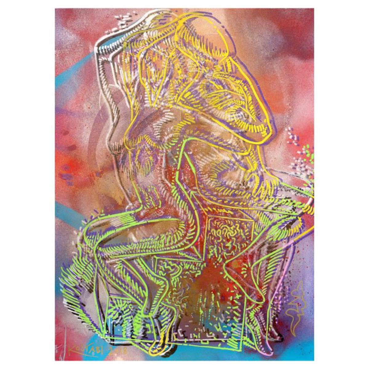 "Shimmering Passion" is a mixed media original painting on paper, by Mark Kostabi. The piece is hand signed and comes with a certificate of authenticity. Measures approximately 30" x 22.5". Reference #: 236276