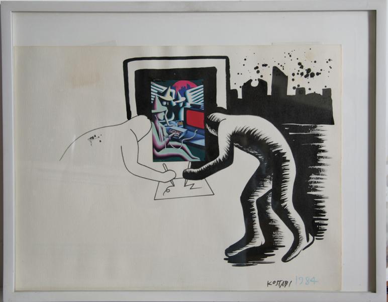 Medium: Ink Drawing and Collage on paper [Signed and Dated, lower right]