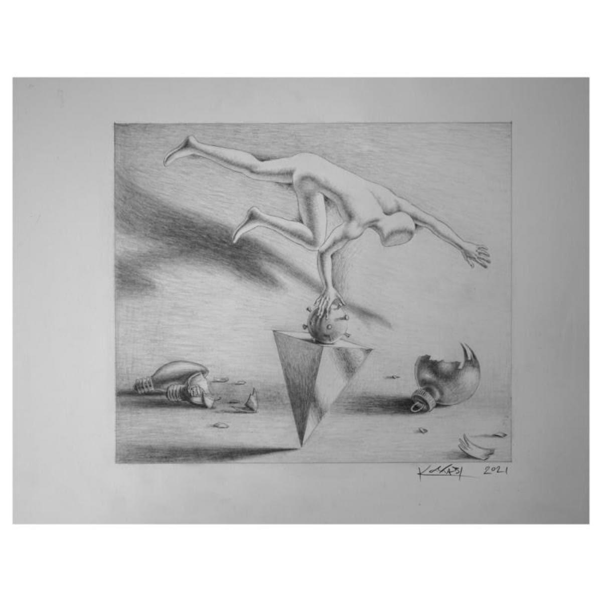 "The New Ornamentation" is an original artwork, pencil on paper, by Mark Kostabi. The piece is hand signed and comes with a certificate of authenticity. Measures approximately 15" x 22". Reference #: 255502