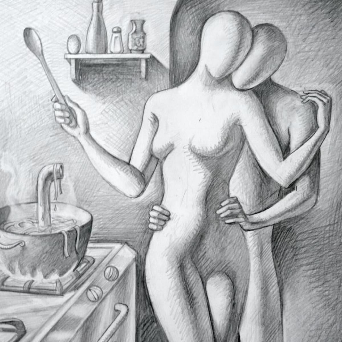 "The Spy Who Loved Me" is an original artwork, pencil on paper, by Mark Kostabi. The piece is hand signed and comes with a certificate of authenticity. Measures approximately 13" x 13". Reference #: 236297