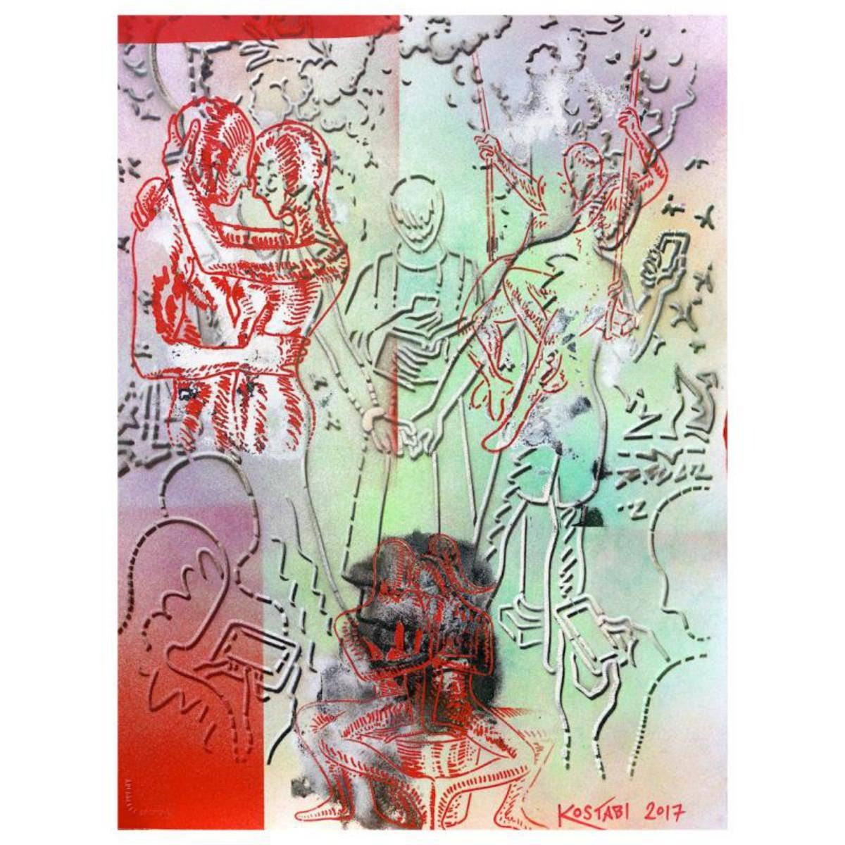 "Till Text Do We Part" is a mixed media original painting on paper, by Mark Kostabi. The piece is hand signed and comes with a certificate of authenticity. Measures approximately 30" x 22.5". Reference #: 236300