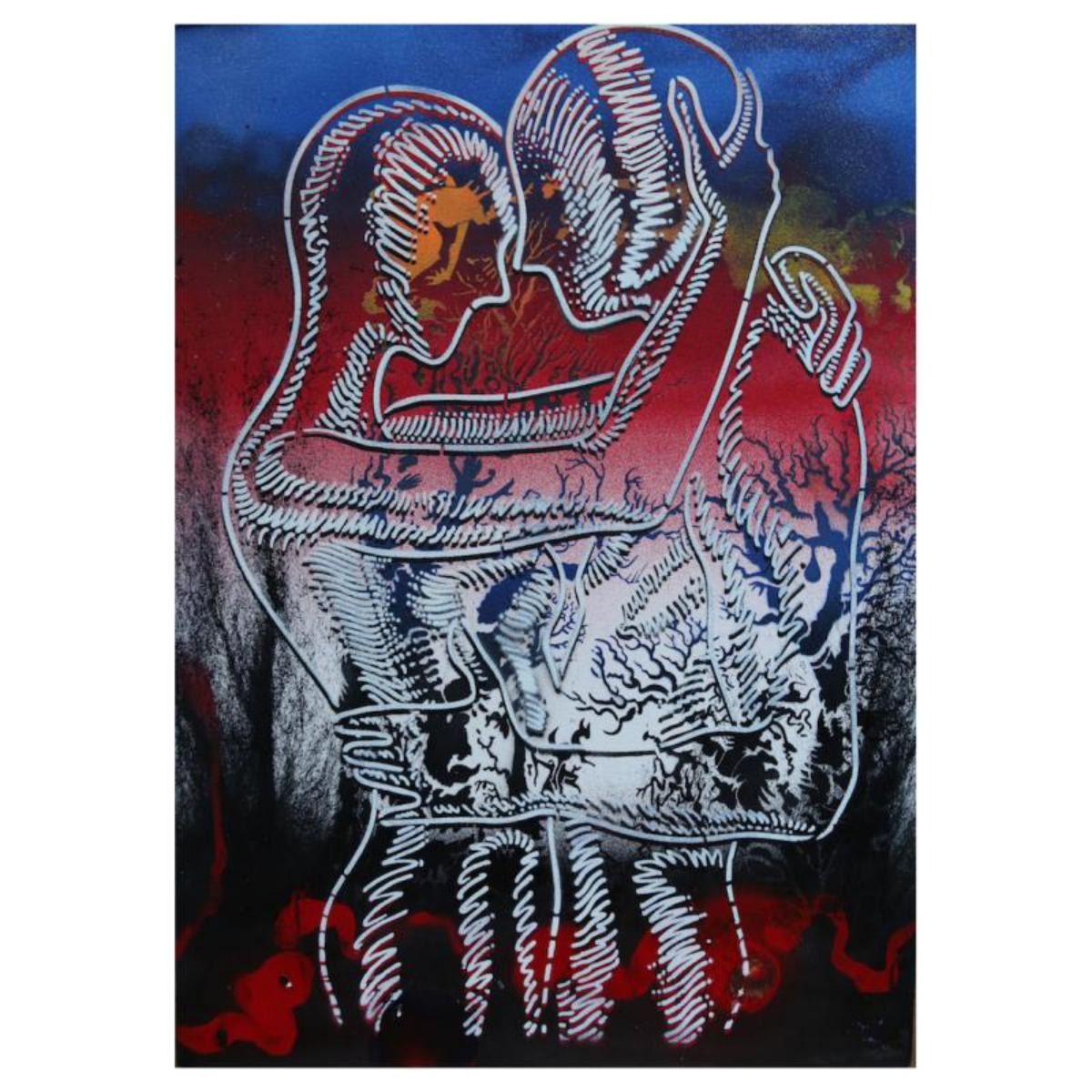 Mark Kostabi, "Transparent Passion" Mixed Media Original Painting; Hand Signed, with COA.