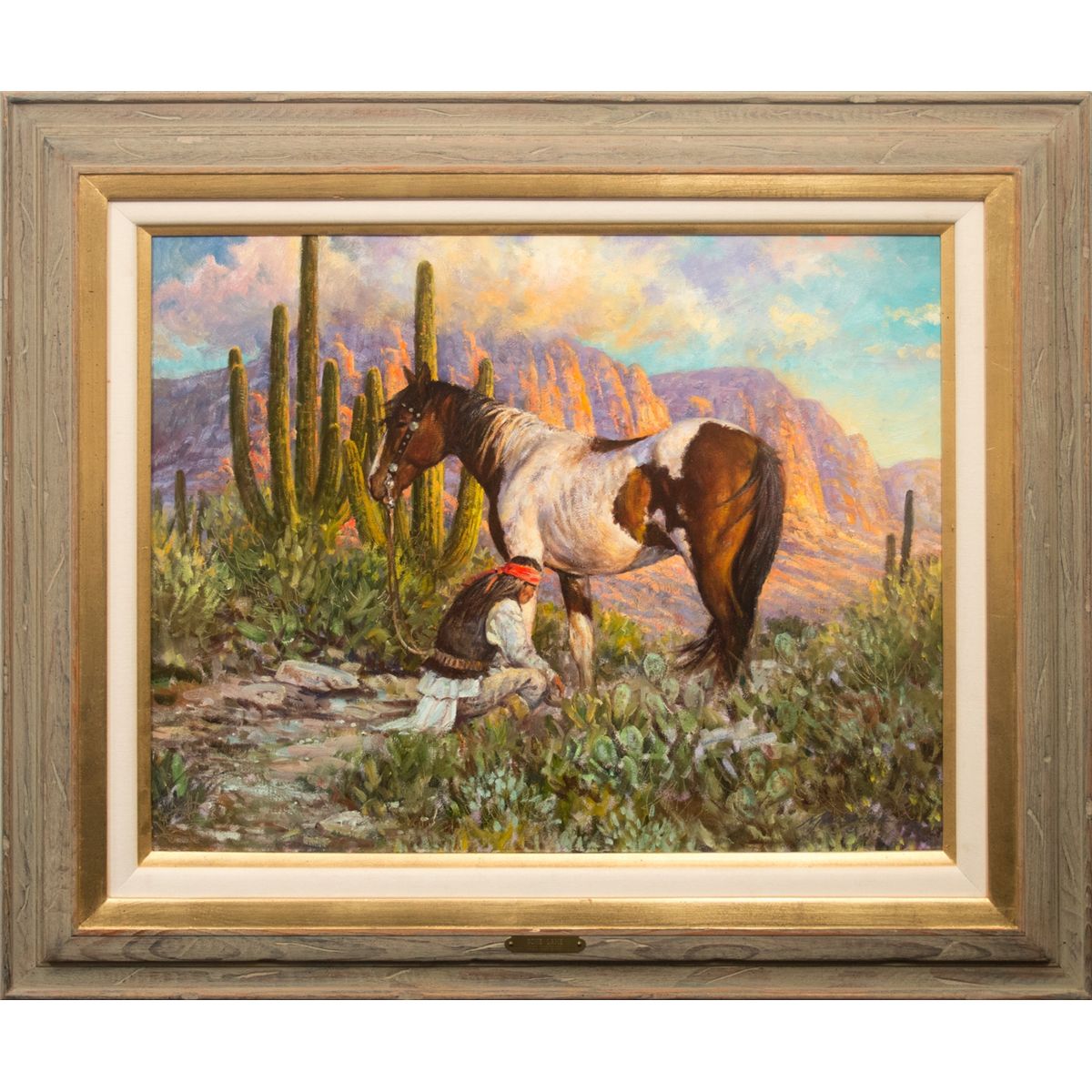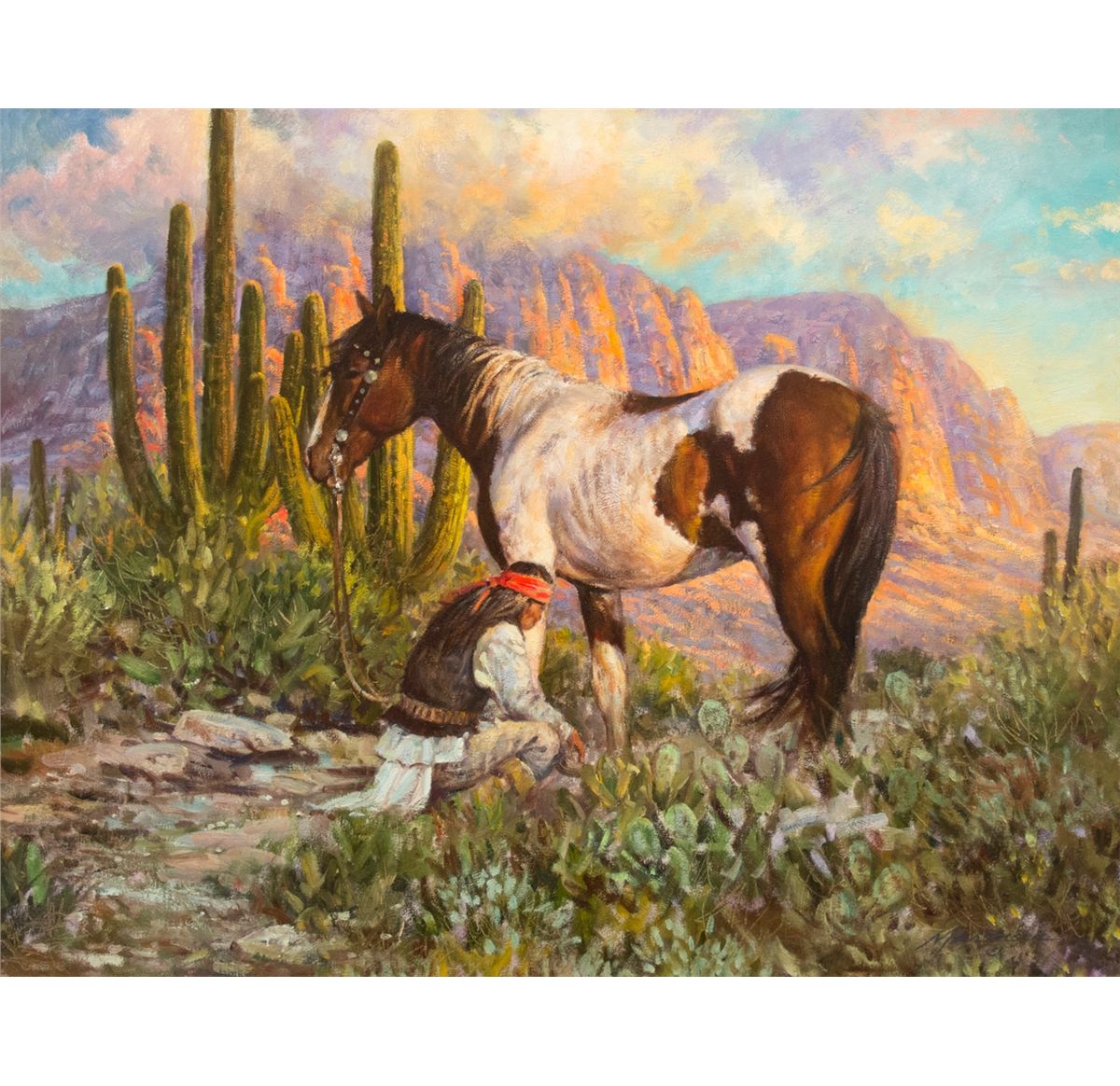 Mark Martensen (1958 - ). Gone Lame. 24" x 30" oil on canvas. Signed lower right: Martensen ©. Provenance: Golden Eagle Trading Co.
