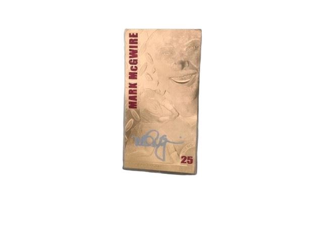 Limited edition 5858/626 1998 scoreboard 23 karat gold foil Mark McGwire trading card. Card features holographic Mark McGwire facsimile signature, red foil name and jersey number and reverse featuring statistics through July 9, 1998.