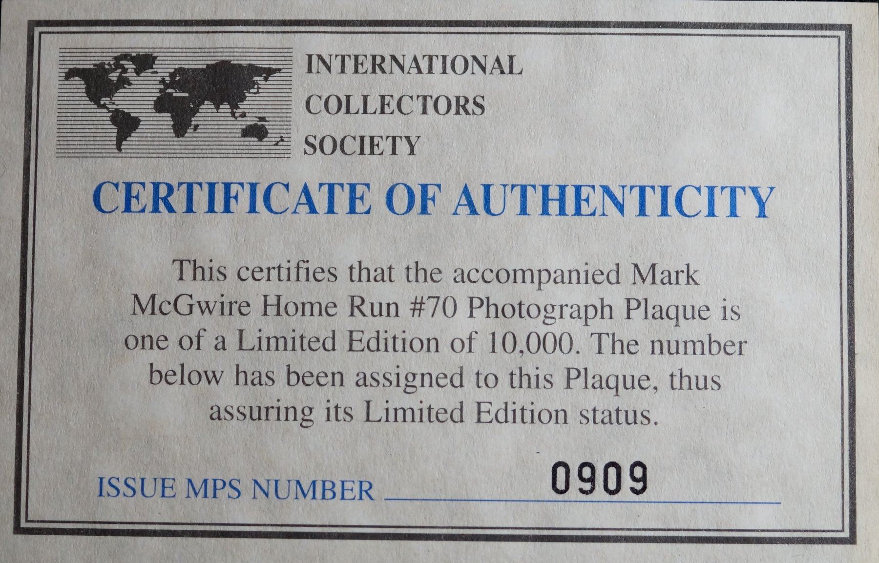 Mark McGwire - 70 Home Runs (1998) - Limited Edition 909/10000