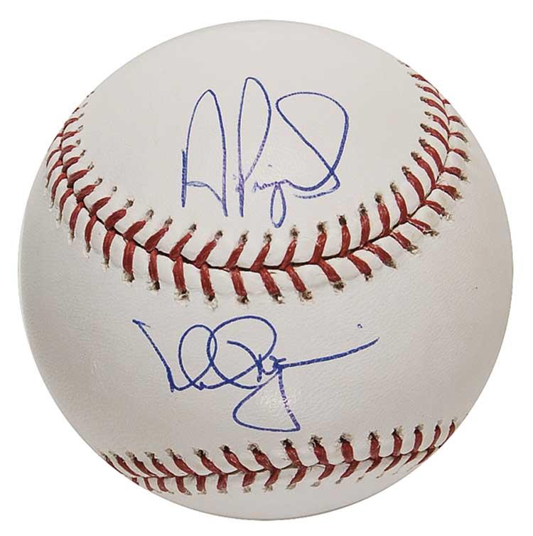Official Rawlings Major League baseball signed in blue ballpoint on the sweet spot by McGwire and on the side panel above by Albert Pujols. In very fine condition. Pre-certified Steve Grad/PSA/DNA and RRAuction COA.