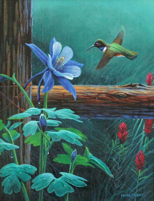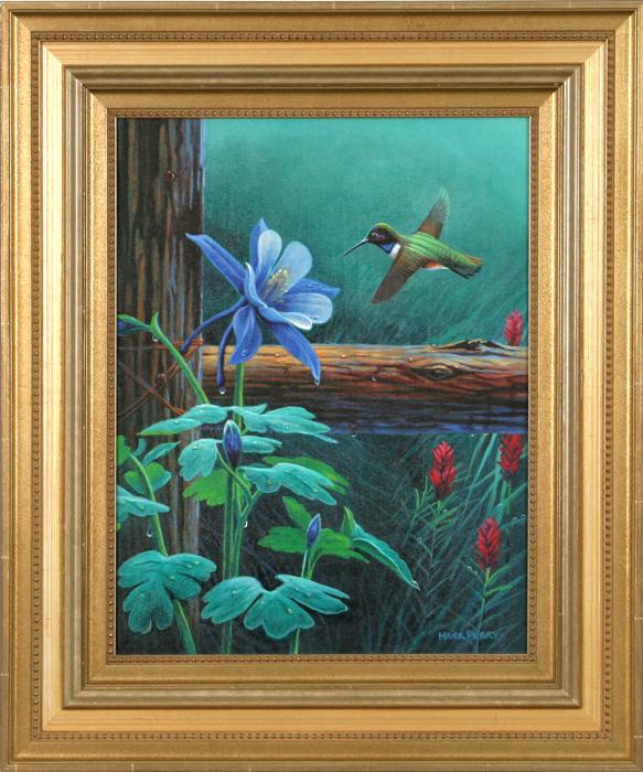 Mark Perry (b. 1960). Keeper of Grandma's Garden. 18" x 14" oil on board. signed lower right. Condition Report: Black lights clean.