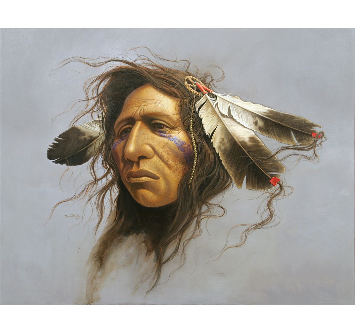 Mark Rohrig (1955 - ). Winter Winds. 40" x 50" oil on canvas. Signed mid left: Mark Rohrig ©. A well known surrealist inspired by the mystical nobility of the Native American people.