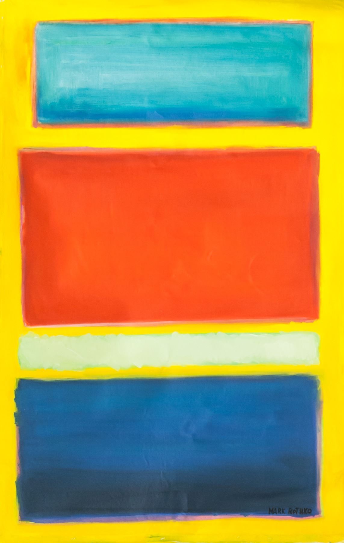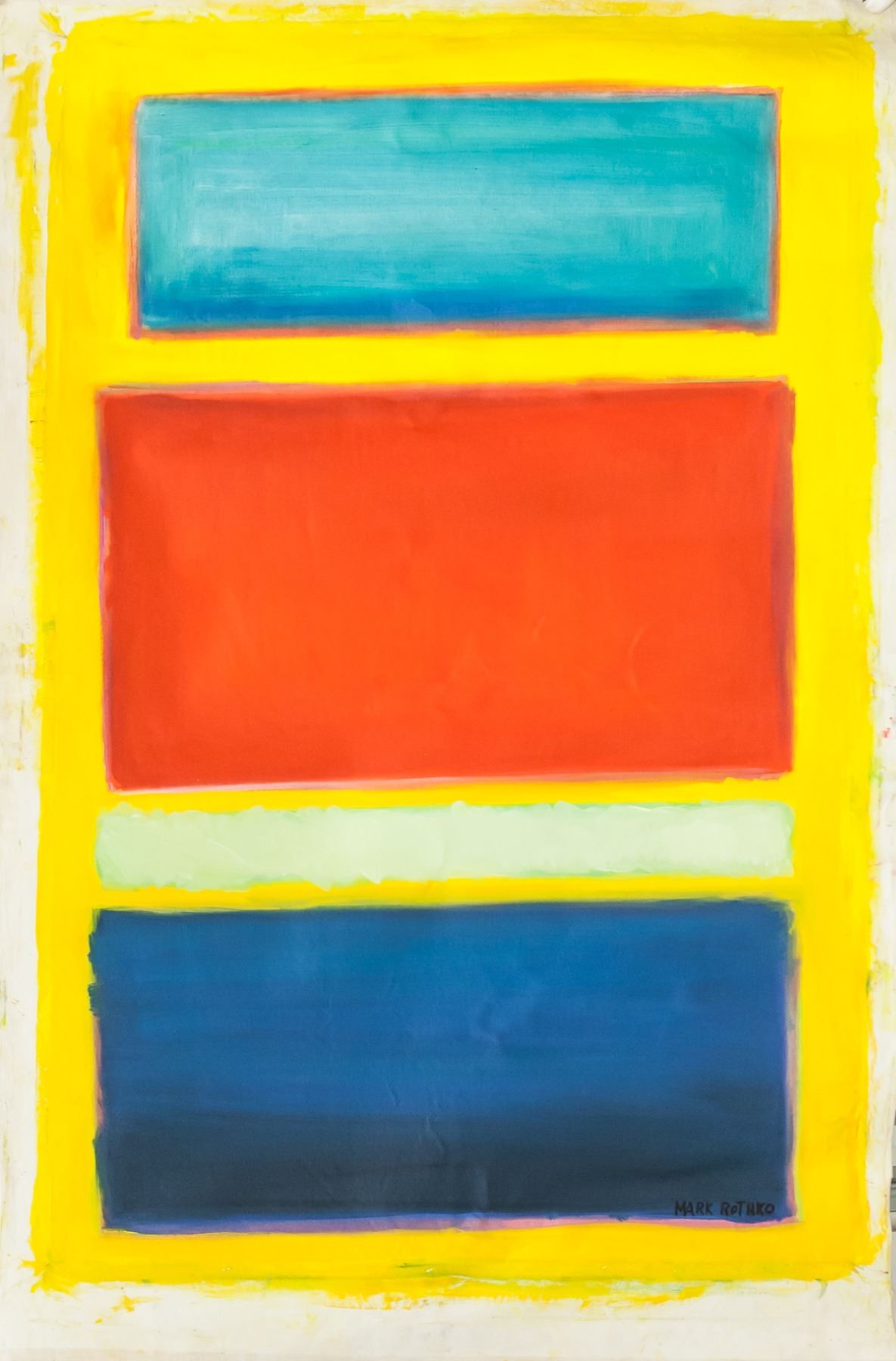 Acrylic on canvas. Featuring an abstract expressionist composition. Signed MARK ROTHKO on the lower right corner. Attributed to Mark Rothko (1903-1970, American). 94 x 150 cm (37 x 59 in). Provenance: This lot carries limited provenance from a Toronto estate