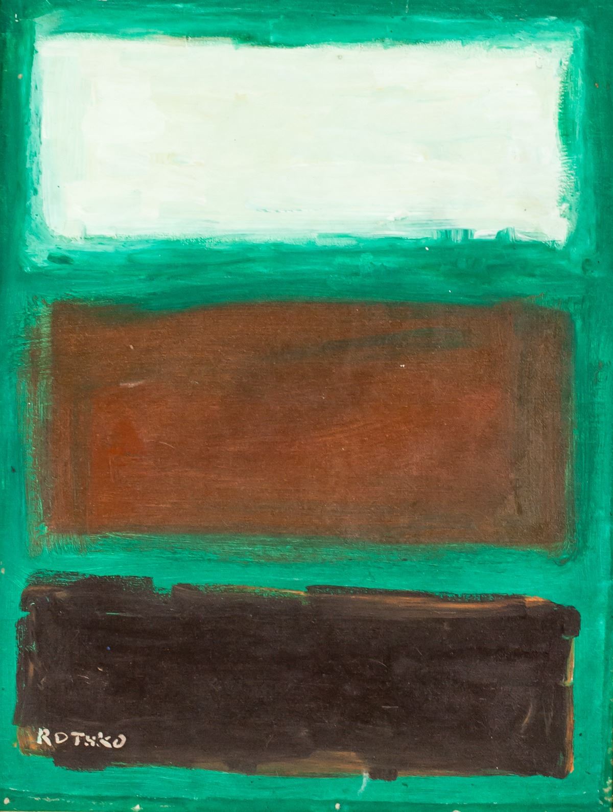 Oil on canvas, stretched and framed. Featuring an abstract expressionist composition. Signed ROTHKO on the lower left corner. Stamped illegibly in teal-blue on verso. Attributed to Mark Rothko (1903-1970, American). 60 x 45 cm (23.6 x 17.7 inches). Framed size: 65 x 50 cm (25.5 x 19.7 inches). PROVENANCE: Southern Ontario estate