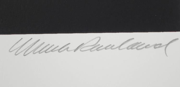 This abstract print portrays flowing gray waves over a dark background illuminated by two prism rainbows. * * Artist: Mark RowlandSignature: In pencil, lower rightMedium: Serigraph on paperEdition: Numbered 44/300Sheet size: 38 x 26 inchesCondition: Excellent * * * * Biography: * * Mark Rowland (1953- ) was exposed to art at an early age since his father, Frank Rowland, was an artist. He developed his own unique style of Serigraph Printmaking, creating soft, flowing shades of colors in bold geometric patterns. He is admired as a master printmaker. * * * His work has been in many galleries, including Circle Gallery, Los Angeles, and Walton Street Gallery Chicago. It can be found in many public collections as well, including IBM Corporation, and Arthur Andersen Co. *