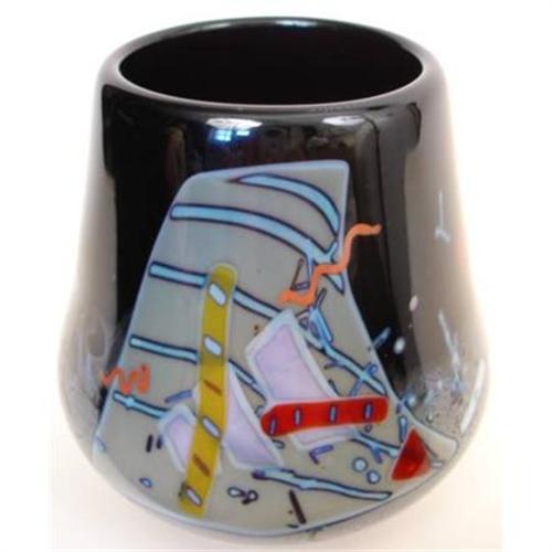 Mark Russell Squares in Gray Series, Blown, Inlaid Glass Colors, Bubble Background. Height: 5.5 inches (14 cm), Circumference: 15.5 inches (39.5 cm). 1985. Mint Condition. Mark Russell is one of the top artists in the glass medium. His work is widely exhibited in numerous major museums and galleries. This piece has had only one owner since it was created. This is a rare chance to own one of his highly desirable and highly collectible early works.