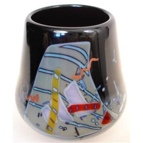 From the Mark Russell Squares in Gray Series, Blown, Inlaid Glass Colors, Bubble Background. Height: 5.5 inches (14 cm), Circumference: 15.5 inches (39.5 cm). 1985. Mint Condition. Mark Russell is one of the top artists in the glass medium. His work is widely exhibited in numerous major museums and galleries. This is a rare chance to own one of his highly desirable and highly collectible early works. This piece has had only one owner since it was created over 20 years ago.