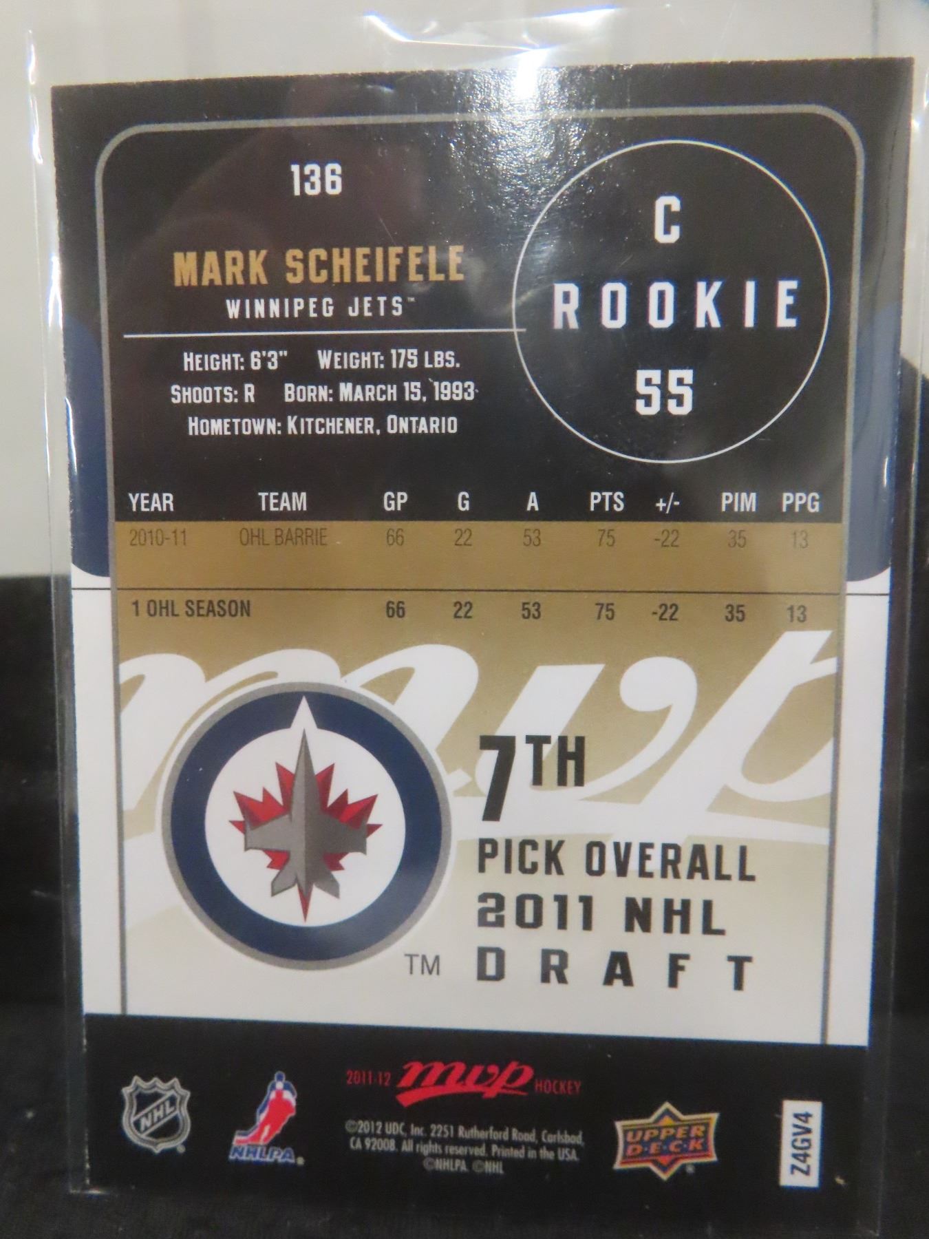 Mark Scheifele Rookie Winnipeg Jets Card
