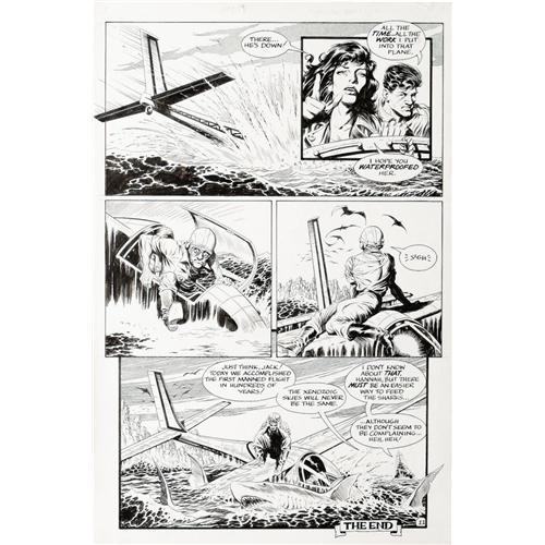 <B>Mark Schultz - Xenozoic Tales #6, page 11 Original Art (Kitchen Sink, 1988).</B></I> Mark Schultz's exquisitely drawn blend of Cadillacs and fearsome dinosaurs, <B>Xenozoic Tales</B></I>, was a critical and commercial success. With his evocative illustrative style, Schultz artfully renders this final page from the story, "Green Air." The image area measures 11" x 16.5", and the art is in Excellent condition.<BR><BR><b>Shipping:</b> Small Flat (<a target="_blank" href="http://www.heritageauctions.com/common/shipping.php">view shipping information</a>)