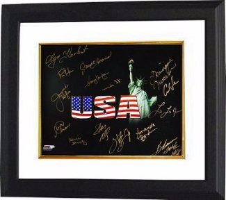 The modern Olympic Games are the leading international sporting event featuring summer and winter sports competitions wherein thousands of athletes variously compete. The Olympic Games are considered the world's foremost sports competition with more than 200 nations participating. The Olympic Games are held every four years, with the Summer and Winter Games alternating by occurring every four years but two years apart. Their creation was inspired by the ancient Olympic Games, which were held in Olympia, Greece, from the 8th century BC to the 4th century AD. This 16x20 photo has been hand signed by 15 Olympians: Olga Korbut, Nancy Kerrigan, Mark Spitz, Kerri Strug, Bob Beamon, Jaycie Phelps, Paul Hamm, Carl Lewis, Amanda Borden, Dominique Moceanu, Amy Chow, Lolo Jones, Janet Evans, Shannon Miller and Sheryl Swoopes. MAB Hologram and Certificate of Authenticity from Athlon Sports. Custom White Mat and Premium Black Frame as shown.