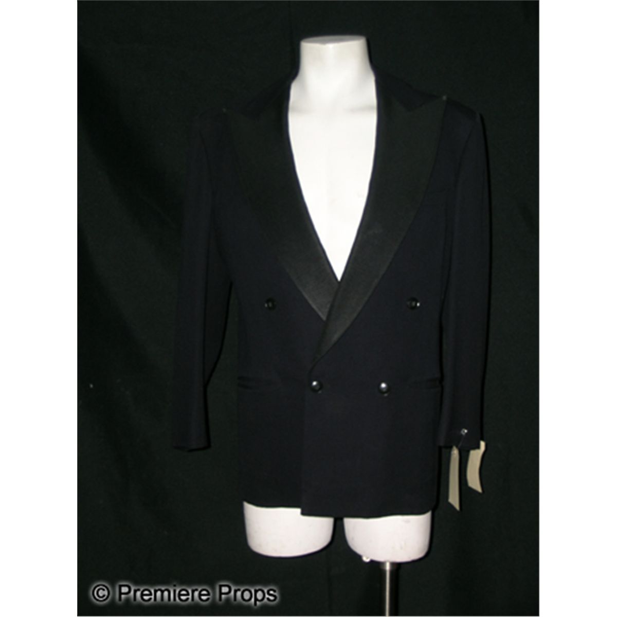 Blue tuxedo jacket with textured satin lapels, worn by actor Mark Stevens in a Golden Age film productions. Includes a Cotroneo maker's label on the inner pocket, as well as an MGM label with Stevens' name handwritten on it. Stevens was a American actor raised in England who appeared in films such as Within These Walls, the Street with No Name and I Wonder Who's Kissing Her Now.