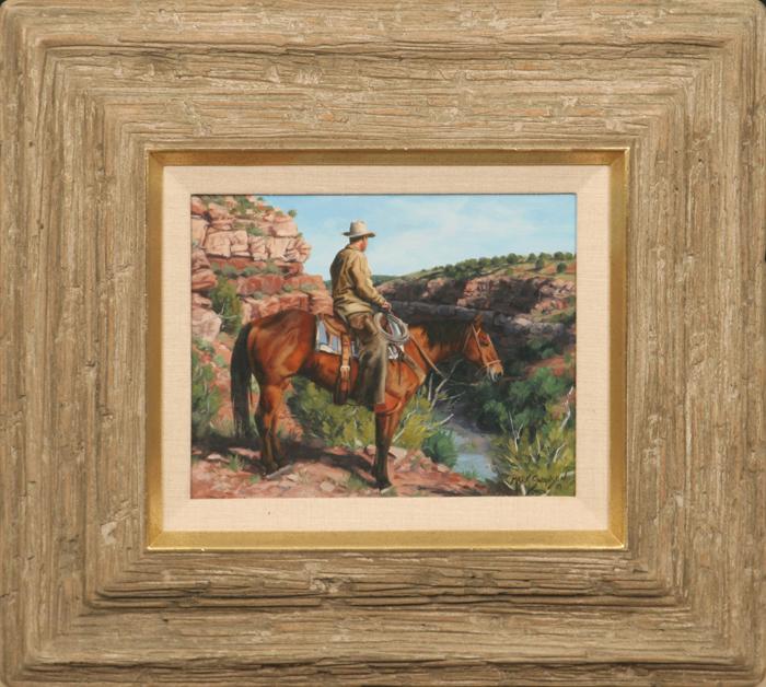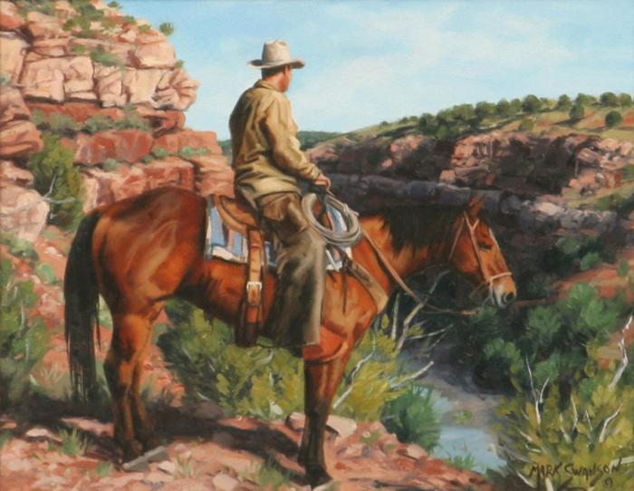 Mark Swanson (b. 1958). Hell Canyon Overlook. 8" x 10" oil on board. signed lower right. Condition Report: Black lights clean.