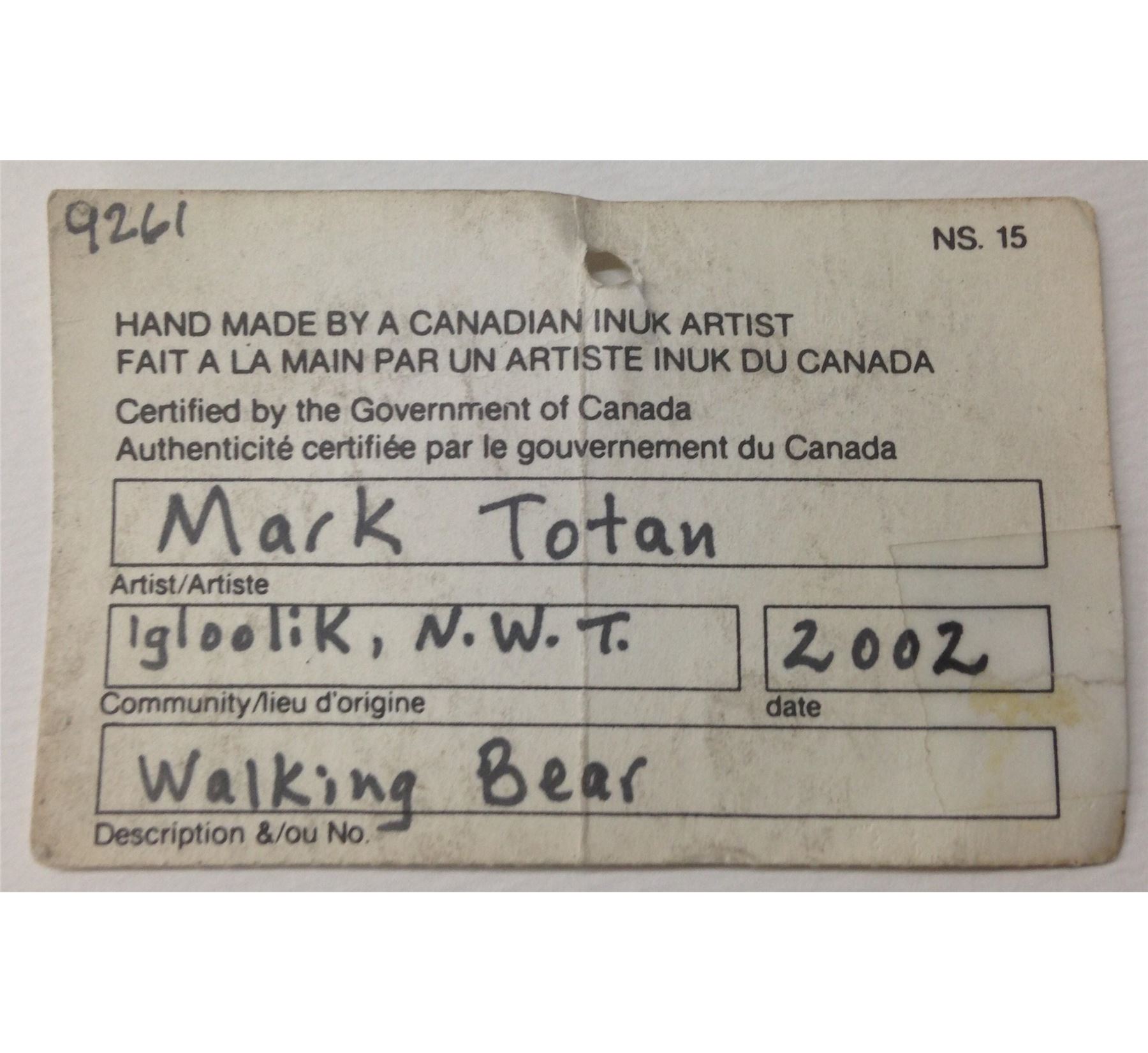 Mark Totan's "Walking Bear" original sculpture. Beautiful carving by renown carver Mark Totan. 12" x 5 1/2" x 6"