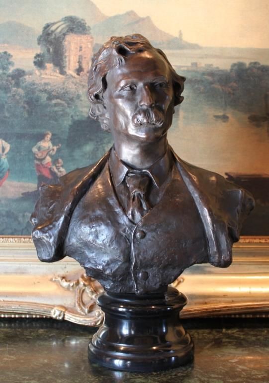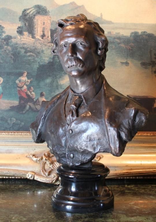 Mark Twain Bronze Bust Sculpture, 15 1/2 H " x 11 1/2W x 5D 14lbs. This bronze sculpture was produced using the "Lost Wax" casting method. The "Lost Wax" Cast method is the most precise metal casting technique in existence, ensuring exquisite detail of the original host model which is usually sculpted in clay or wax. This "Lost Wax" casting method is an extremely labor intensive and expensive process, but the end results produce a Heirloom Quality Masterpiece!