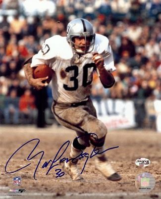 Mark van Eeghen played ten years in the National Football League, including making two Super Bowl appearances. He was a member of the Oakland Raiders (1974–1981). Ven Eeghen rushed for over 1,000 yards in 3 consecutive seasons from 1976-1978. He was also a Pro Bowl selection in 1977. Playing for Oakland in Super Bowl XV, he was the game's leading rusher with 75 yards on 18 carries. He also won a championship ring with the Raiders in Super Bowl XI, and was the team's second leading rusher with 73 yards. Mark van Eeghen has hand signed this Oakland Raiders 8x10 Photo. The photo was signed 11/23/07 in San Francisco, CA. RS Hologram and Certificate of Authenticity from Athlon Sports.