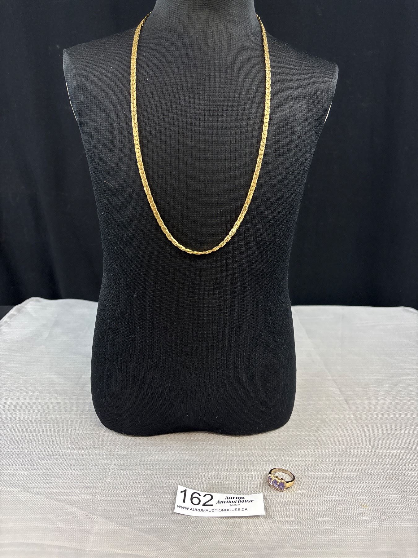 Marked 14k Italy, 24" 4mm Gold Chain With Lobster Clasp, 23.04 Grams, Failed Acid Test & 3 Stone Halo Ring, Marked 14kt, Failed Acid Test