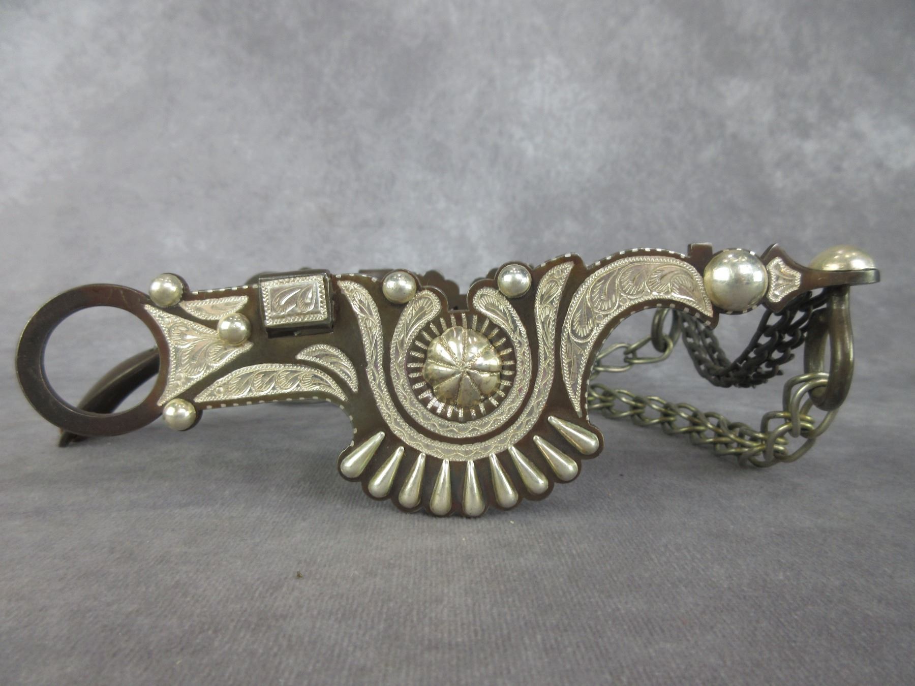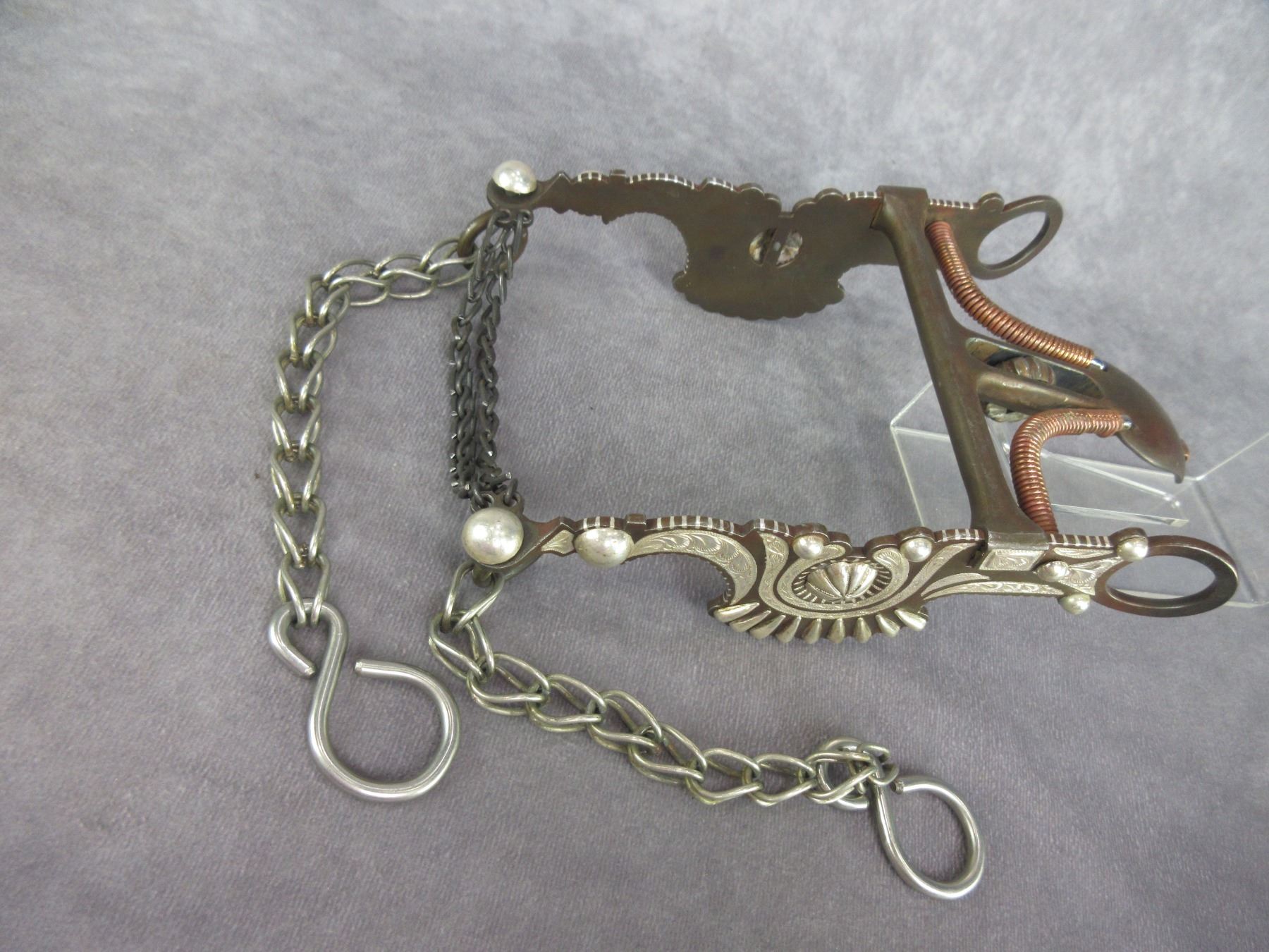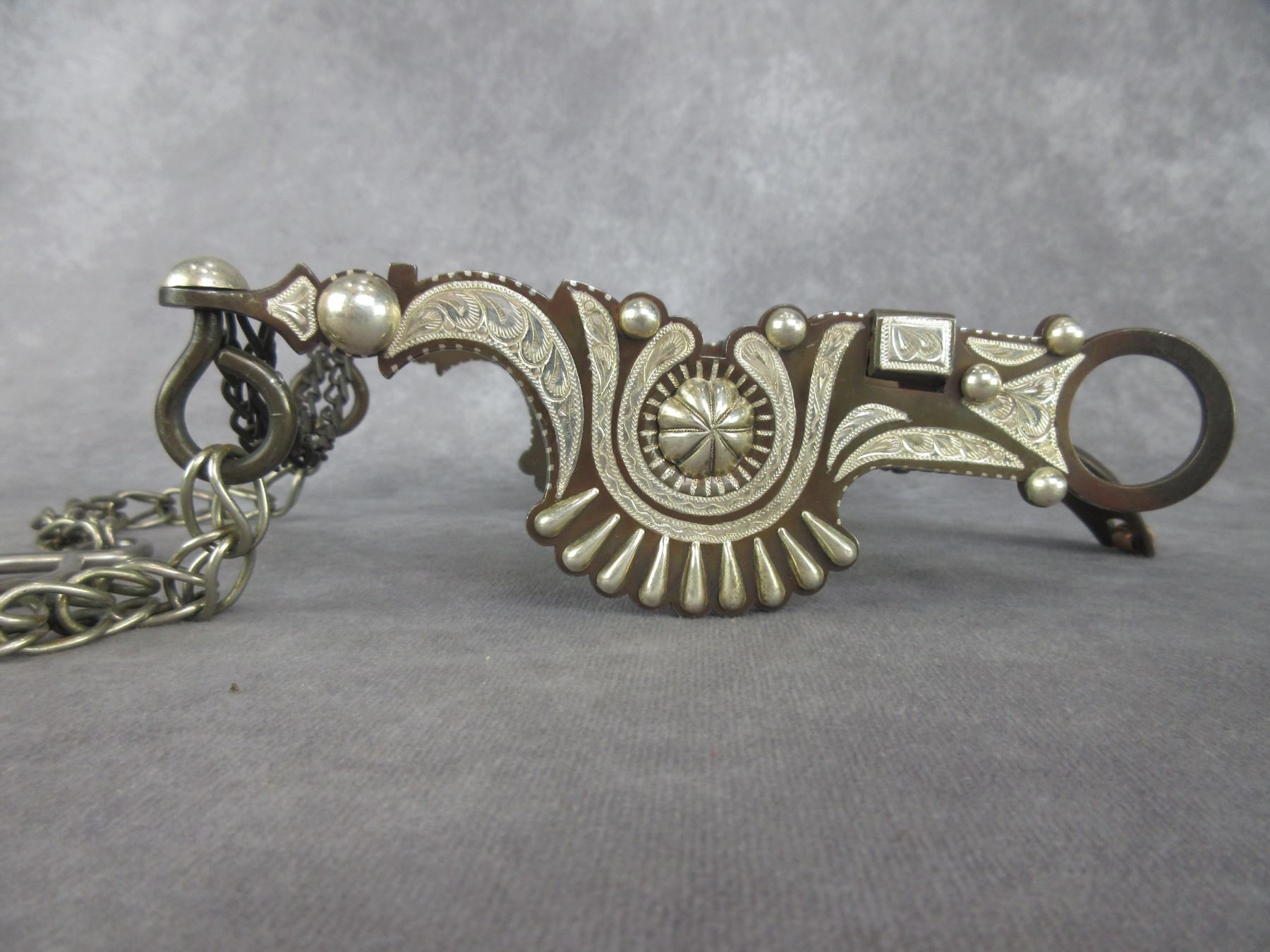 Marked Black 23 Silver Inlaid Bit- Carmel Cheek- Spade Mouth- Double Slobber Chains- Rein Chain Swivels- Unused