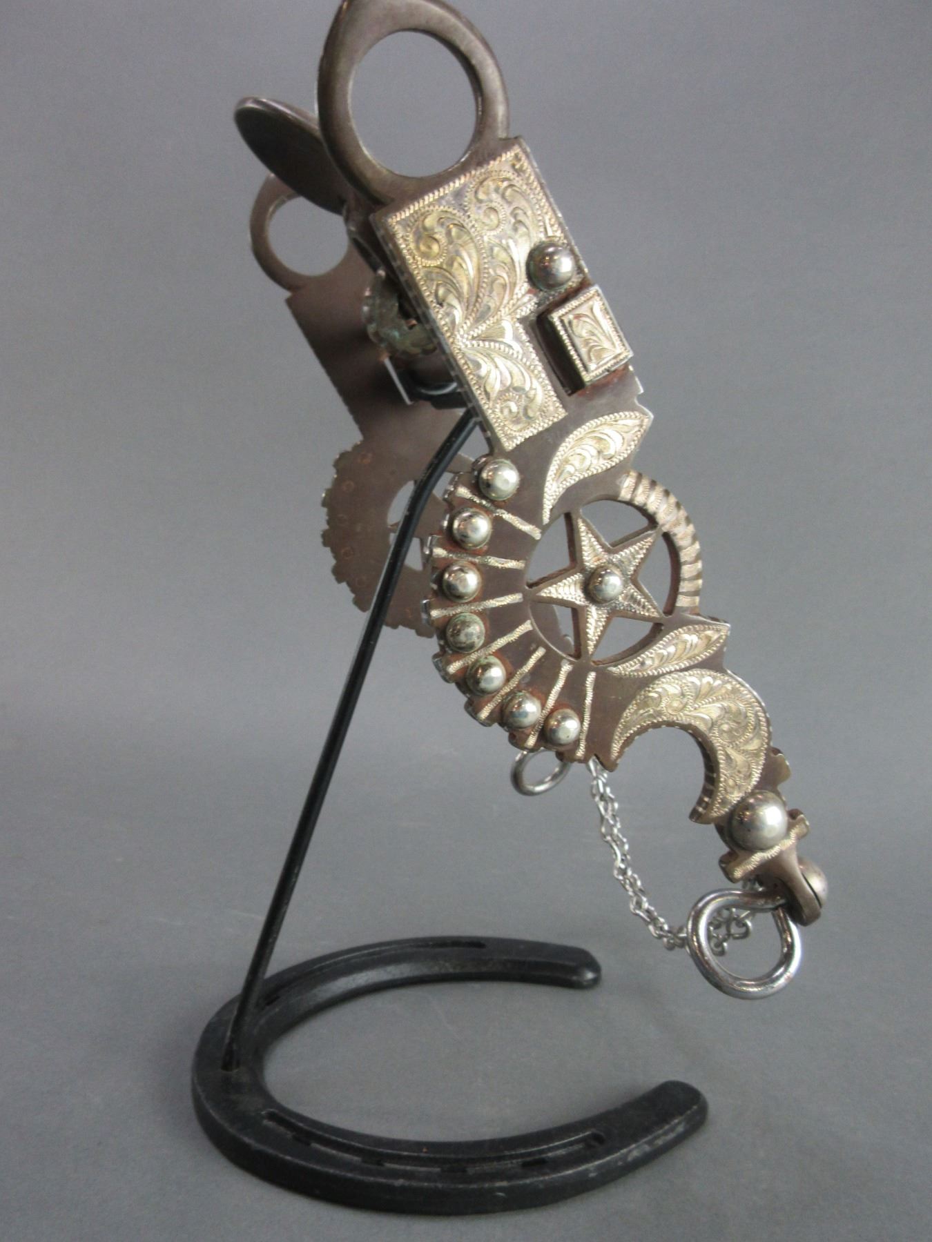 Marked Charlies Silver Inlaid Bit- Santa Barbara Elko Star Cheek- Spoon Mouth- Slobber Chains- Rein Chain Swivels- Very Good Condition
