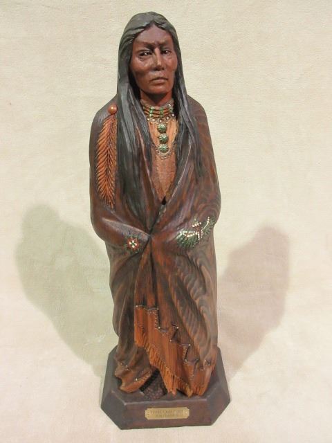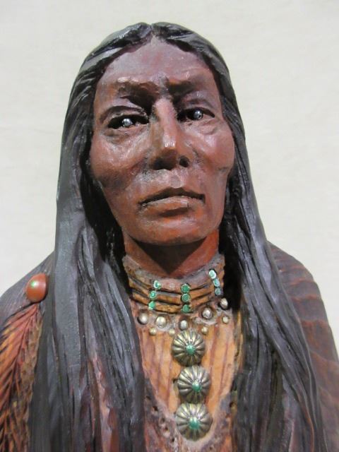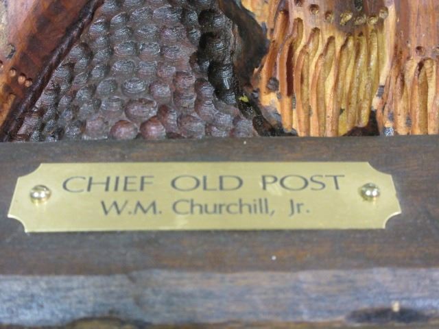 Marked "Chief Old Post" WM Churchill Jr Wooden Statue- Carved by Churchill from a an Old Post