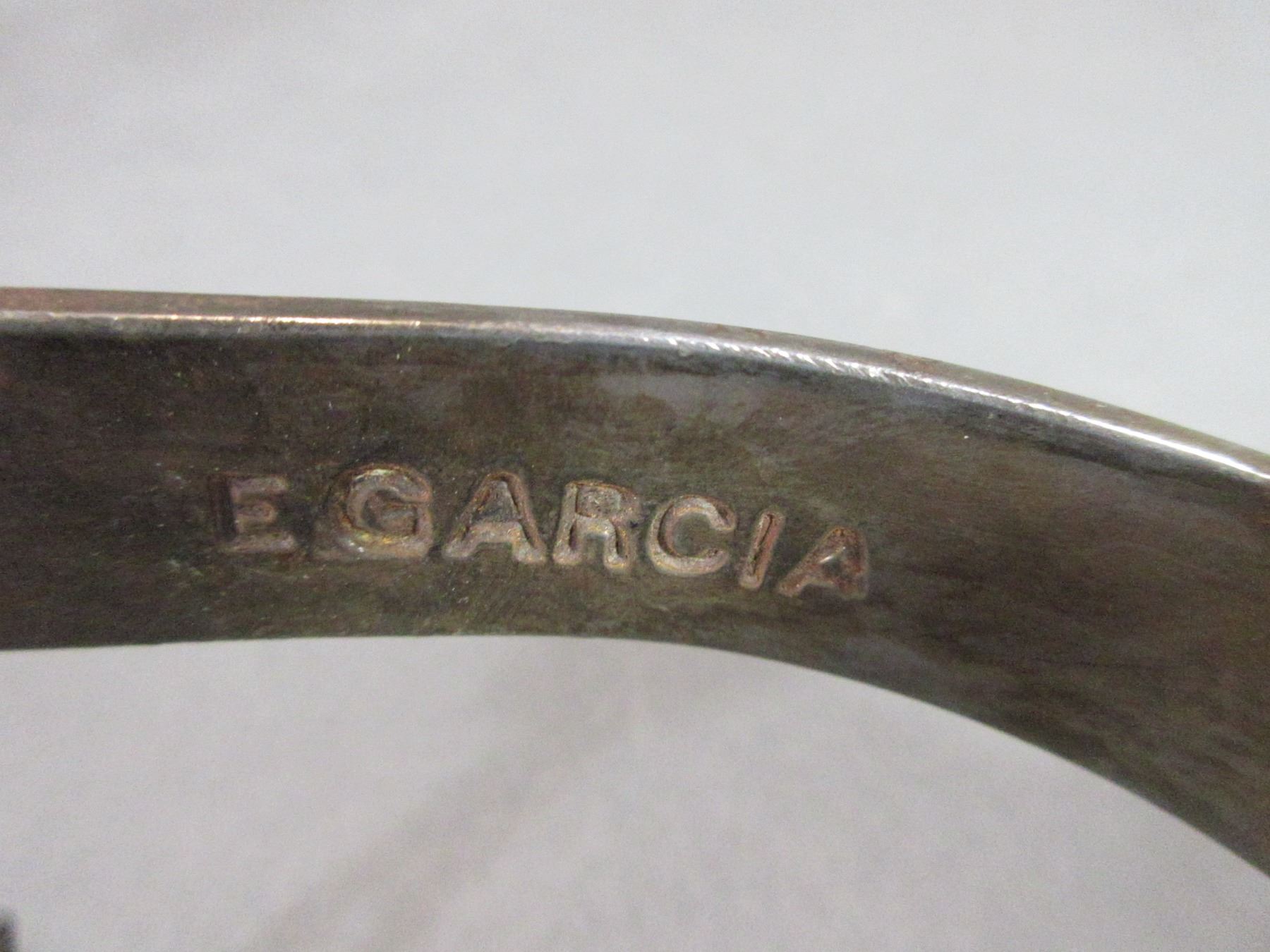 Marked E Garcia Silver Inlaid Spurs- Elko Star Pattern- 1.5" Bands- 2.5" Shanks- 14 Point Rowels Wit